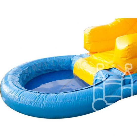 Glijbaan dolfijntje met waterbad/ballenbad – Deze opblaasbare glijbaan bevat aan het eind een bad die je met bijvoorbeeld water of plastic ballen kunt vullen. Hierdoor glijden kinderen van de hoge glijbaan zacht naar beneden. Succes gegarandeerd op een evenement of feest. Want kinderen kunnen zich hiermee urenlang vermaken. Je krijgt bij het huren van de glijbaan een elektrische blower geleverd. Hiermee kun je hem eenvoudig binnen een minuut op blazen. Mocht je hier hulp bij willen dan is dit ook mogelijk tegen een kleine vergoeding.