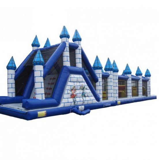Stormbaan Kasteel Run- Een prachtig blauw kasteel die mooi past bij bijvoorbeeld een winters evenement. Een stormbaan is geschikt voor elk soort feest of evenement. Deze stormbaan bevat aan de binnenkant verschillende hindernissen en obstakels. Wie is er als eerste aan de andere kant van de stormbaan zonder schrammen?